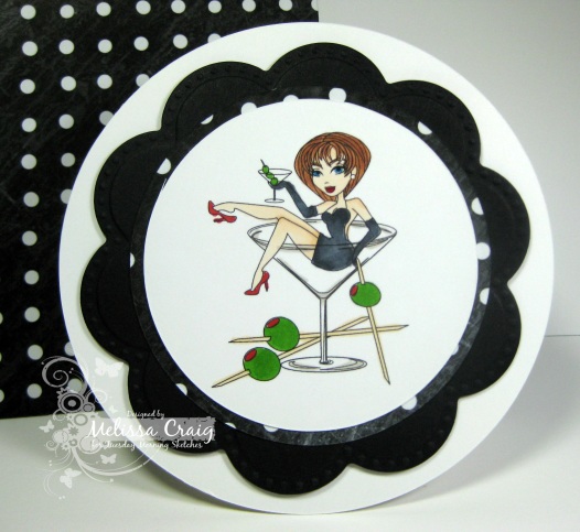 Sassy Studio Designs is our sponsor this week so I chose to work with Pin Up Martini. I have a harder time with the sexier images, but my stab at isn't too bad. I forgot one element of the sketch. Oops. But I've been so busy working on another project, my card wasn't made until last night.